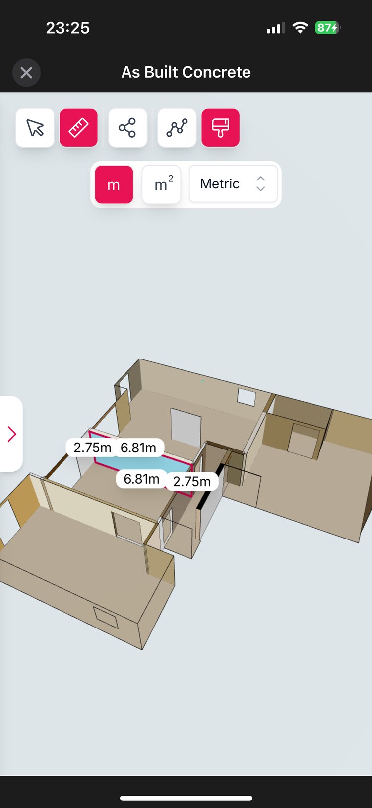 Once the scan is completed, Metaroom processes the data into a coherent 3D model which can be exported as an IFC file – the standard open format for BIM. This means the model can be imported into any BIM or CAD software (such as Autodesk Revit, Graphisoft Archicad, etc.) for further analysis. Within the Metaroom Studio interface, users can inspect the model, measure dimensions, and even overlay additional information (Figure 3). One particularly powerful feature for pre-demolition audits is the integration of metadata via QR codes. Metaroom’s scanning app can automatically recognize QR code tags in the environment and link them into the 3D model. In practice, this could be used as follows: prior to scanning, an auditor might place QR code stickers on certain items or components in the building – for instance, tagging structural beams, pieces of equipment, or batches of material with a code that corresponds to an entry in a materials database. As Metaroom scans and encounters each QR code, it logs its position and can embed a hyperlink or data snippet in the model. Later, when reviewing the model in Metaroom Studio or another BIM tool, the auditor can click on that tagged object and retrieve associated information (such as material type, weight, potential reuse value, or hazardous content). This capability effectively creates a digital audit trail within the 3D model, combining geometry with semantic data. It directly supports the recommendation from standards and guides to uniquely mark reusable elements and record their location for post-demolition tracking. Instead of relying on paper labels or disconnected spreadsheets, Metaroom embeds this info visually in the scan, enhancing traceability of each component.