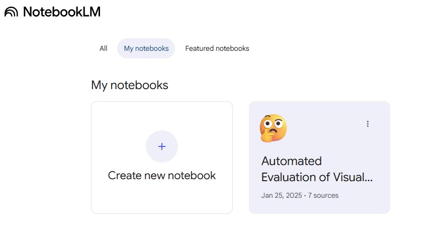 Navigate to https://notebooklm.google/ and click Try Notebook LM. When you do, you will see a screen with your existing Notebooks and the option to create a new one.